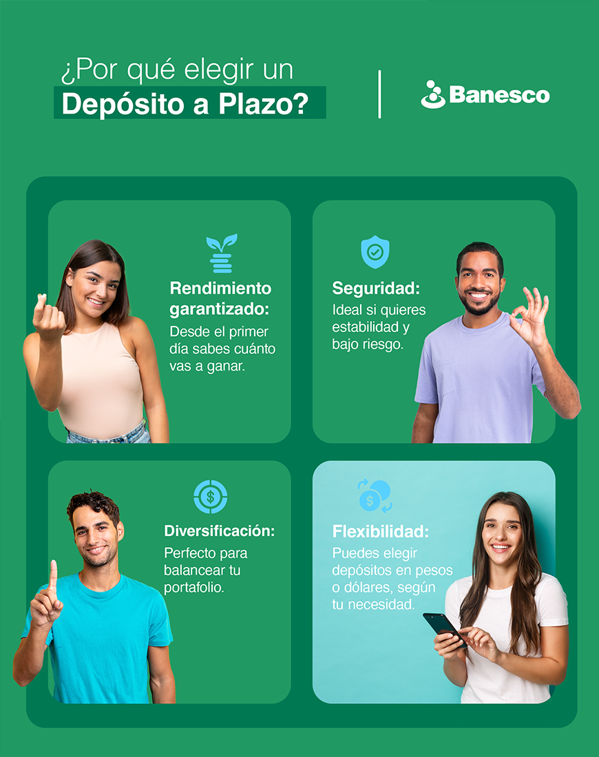 Si quieres invertir de forma segura y ver crecer tu dinero sin sobresaltos, un depósito a plazo es una gran opción. Solo asegúrate de elegir el plazo que mejor vaya con tus objetivos… y deja que tu dinero trabaje por ti.